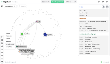 LightRAG: Generación Aumentada de Recuperación (RAG) simple y rápida, mediante un mecanismo de búsqueda hibrida que combina la búsqueda semántica basada en embeddings, una base de datos de vectores y la búsqueda por palabras clave.