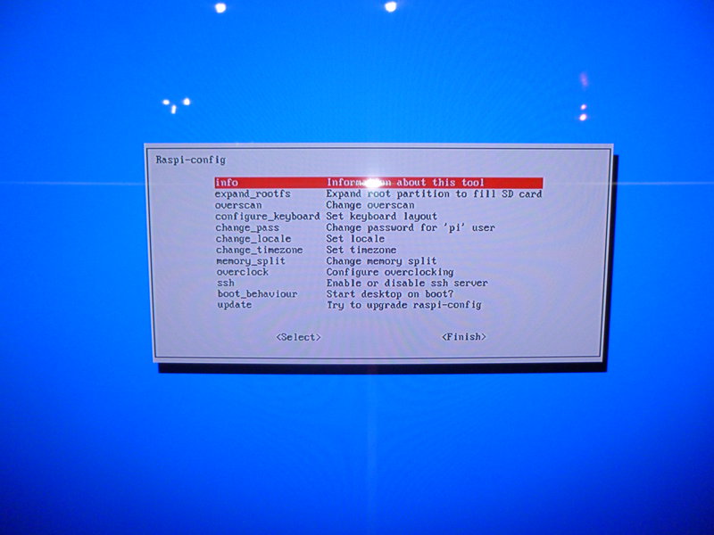 En el primer arranque se activara el Raspi-conf que nos permitirá hacer las configuraciones del equipo. Esta es una de las ventajas de las Rasbian, que cuenta con un sistema de ventanas que nos facilitará la configuración inicial. Esto solo se requiere hacer una vez y nos permitirá hacer cosas como: