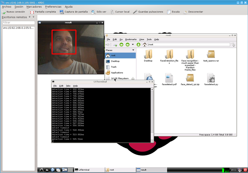 Luego podemos ver y manejar el escritorio remotamente desde una variedad de dispositivos y aplicaciones clientes de VNC, por ejemplo en KDE tenemos el Krdc, en Gnome tenemos el Vinagre, en Windows el RealVNC, Putty y en Android el AndroidVNC. Un punto importante para el acceso remoto a nuestra Raspberry es que debemos conocer el IP que ha tomado en nuestra red. Esto lo podemos saber con el comando ifconfig pero podría ser un problema si no tenemos conectada a ella periféricos de entrada y salida (teclado y monitor). Para resolver eso recurrí a la pantalla de administración de mi switch casero en donde encontré la Raspberry en el área de clientes de red (DHCP).