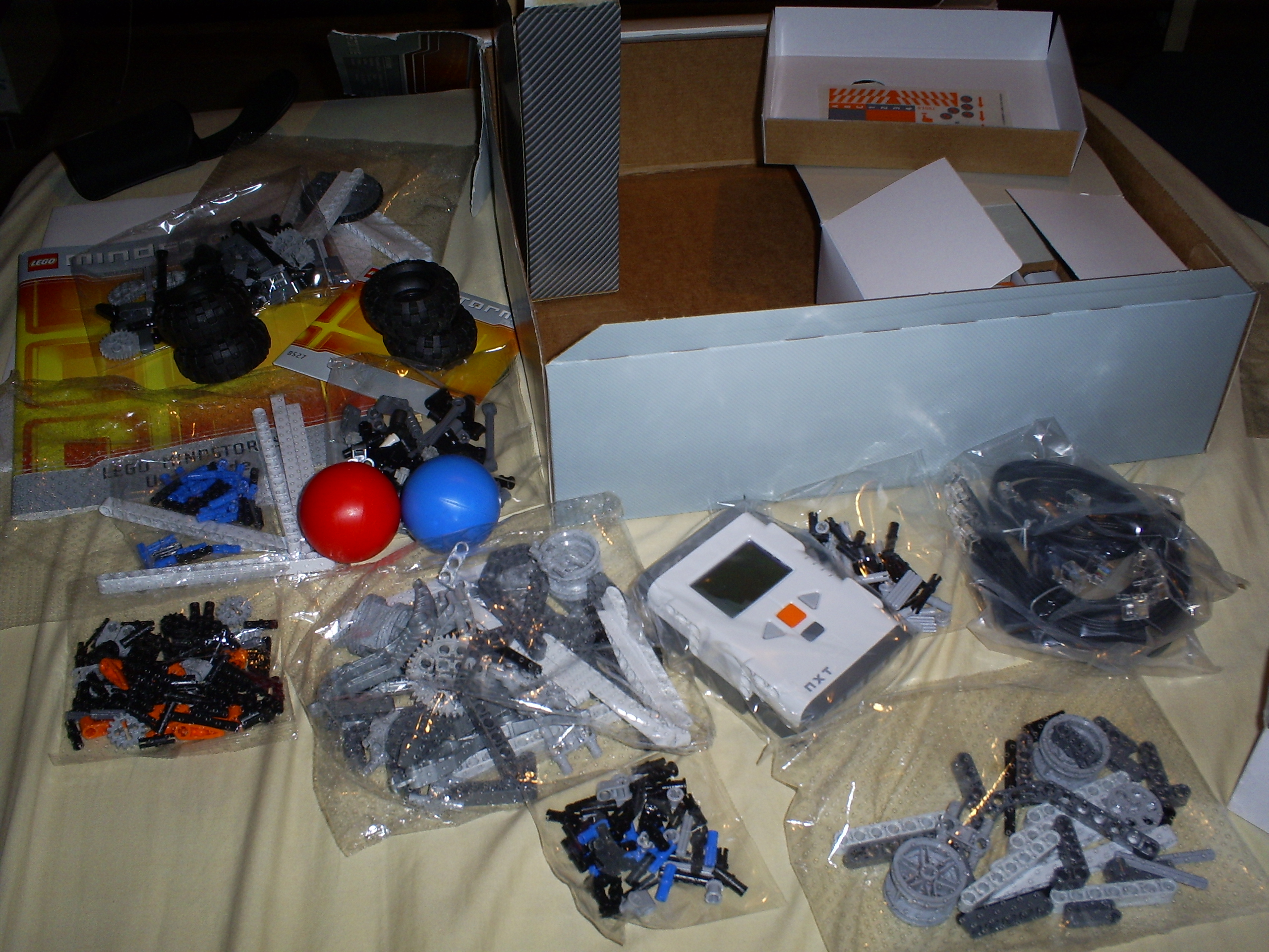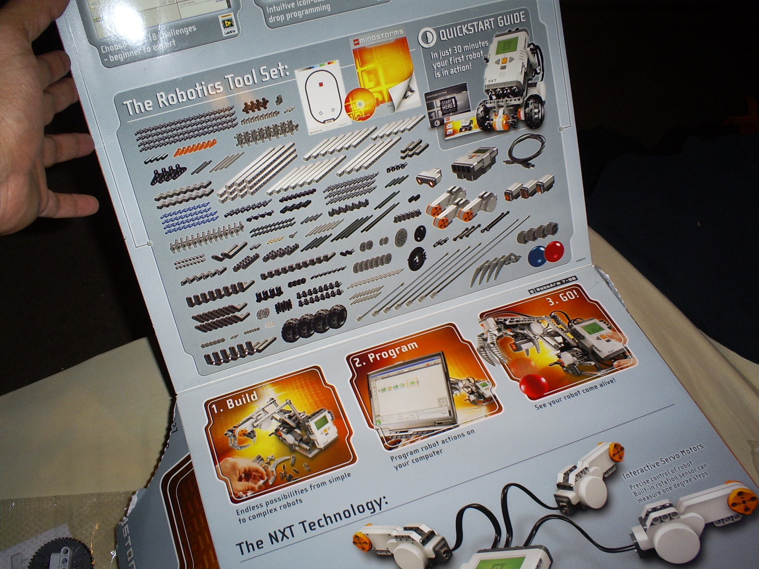 A primera vista tiene mucha semejanza con otros Legos Mechanics, sin embargo el Lego Mindstorm trae buena cantidad de piezas moviles como engranajes, poleas, ruedas, barras y en suma, más de 500 piezas de varios tamaños. Pero lo que realmente nos permite construir robos con este juguete, son la piezas que nos permiten introducir “inteligencia” a nuestros modelos así como poder accionar movimientos en función de los estímulos del ambiente.