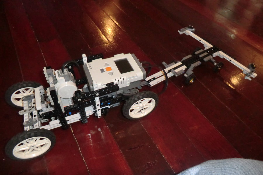 Para incorporar y conectar el computador, voy a adaptar un pequeño remolque que soporte el peso del mismo. Como lo he mencionado en otro post, aun no he logrado conectar, vía Bluetooth, las aplicaciones hechas con nxt-python al computador por lo que debo recurrir a la conexión USB. Por otro lado, aunque presidiera de la conexión USB y utilizara la Bluetooth, esta ultima tiene mucho menos alcance que una WiFi. Teniendo el computador adjunto al robot, podemos controlarlo en todo un edificio o galpón industrial, vía red inalambrica (WiFi).